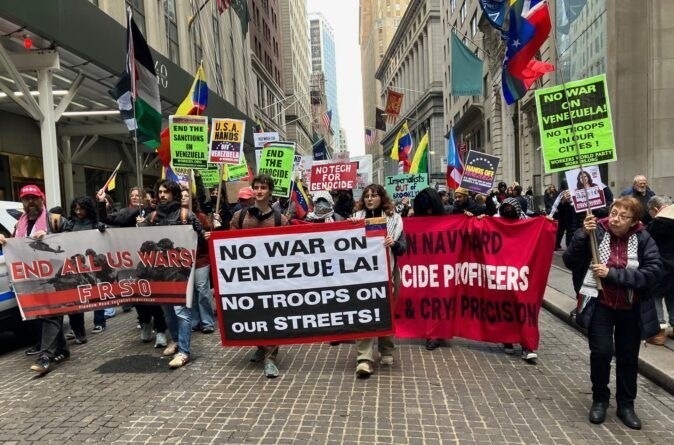 در نیویورک، میدان تایمز شاهد یک تظاهرات پرشور بود که در آن معترضان تصاویری از مادورو حمل می کردند و شعار می دادند “ایالات متحده رئیس جمهور ونزوئلا را ربوده است!” اعتراض کردند. ویدئوهای منتشر شده توسط خبرنگاران آتش زدن پرچم آمریکا و درخواست آزادی مادورو را نشان می داد.